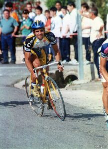 En la foto podemos ver a Miguel Soro subiendo el puerto de La Drova durante la Volta a la Comunitat Valenciana del año 1999.